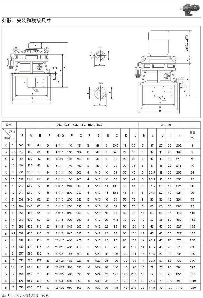 X . B擺線針輪減速機外型圖,安裝和聯(lián)結尺寸三 29